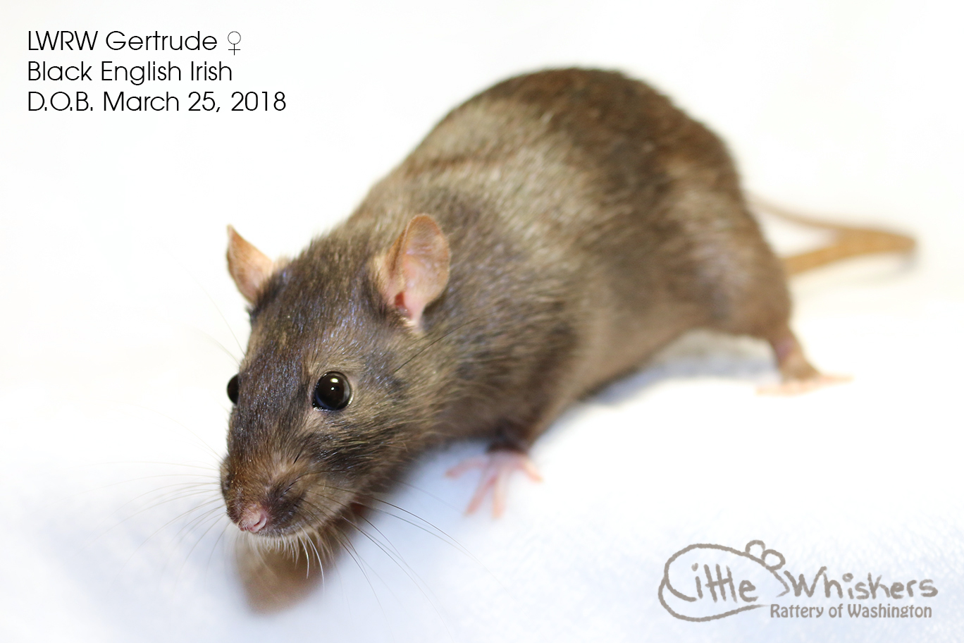 Another litter we are very excited about! Ayla was Best of Show winner at the RatsPacNW Fall show in 2018. She cored 99%, making her a Grand Champion. Besides all of that, she is a sweet little girl. These babies will be wonderful!